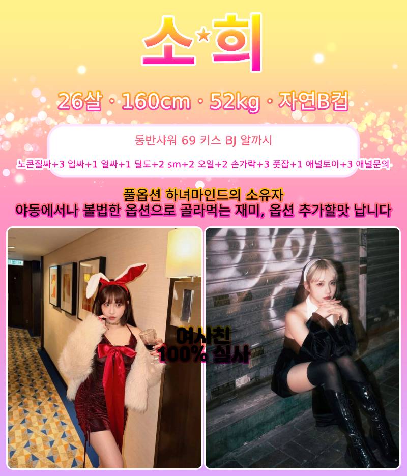 아가씨의 사이즈와 마인드에 감동하실 수 있도록 부산 최고 퀄리티 약속 드립니다.